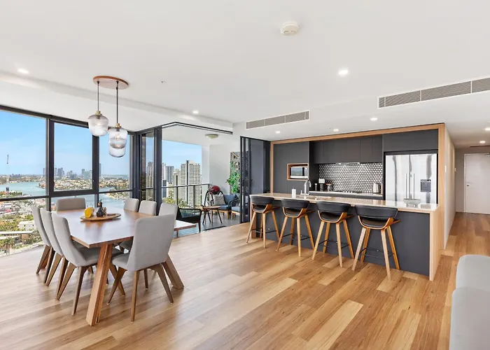 広々とした寝室2室のStunning 180 Degree Views At Avalon Apartment ゴールドコーストは、Coomera鉄道駅から26kmの距離で、Crazy Cat Cafeから徒歩で5分の場所にあります。 この628m²のアパートに滞在中は、プールでくつろいだり、宿泊から750メートル離れたゴールドコーストを訪れたりできます。